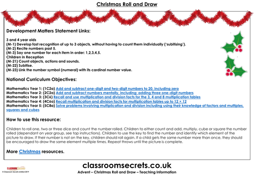 Eyfs Ks1 And Ks2 Roll And Draw Game Christmas Activity Teaching Resources