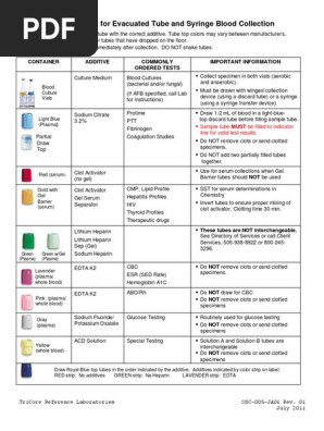 Order of Draw Tube Guide - Clinical Pathology Laboratories. From the menu bar on the right select Comment. Citrate tube blue Fill to mark as the ratio of blood to.